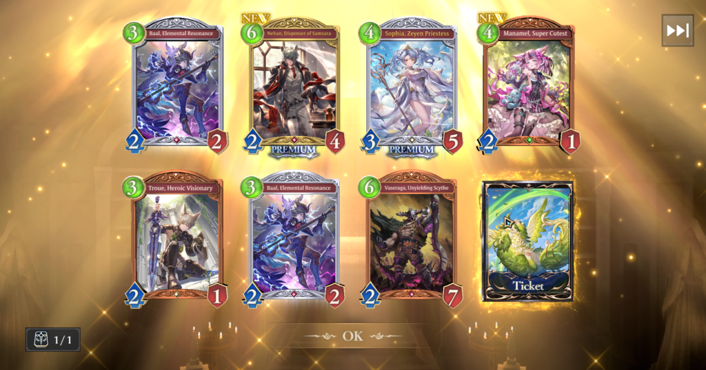I’ll upload more screenshots from the openings later, but for now I’ll wander back into my sleepless cave, where I’ll inevitably get bullied in Shadowverse ranked mode.
